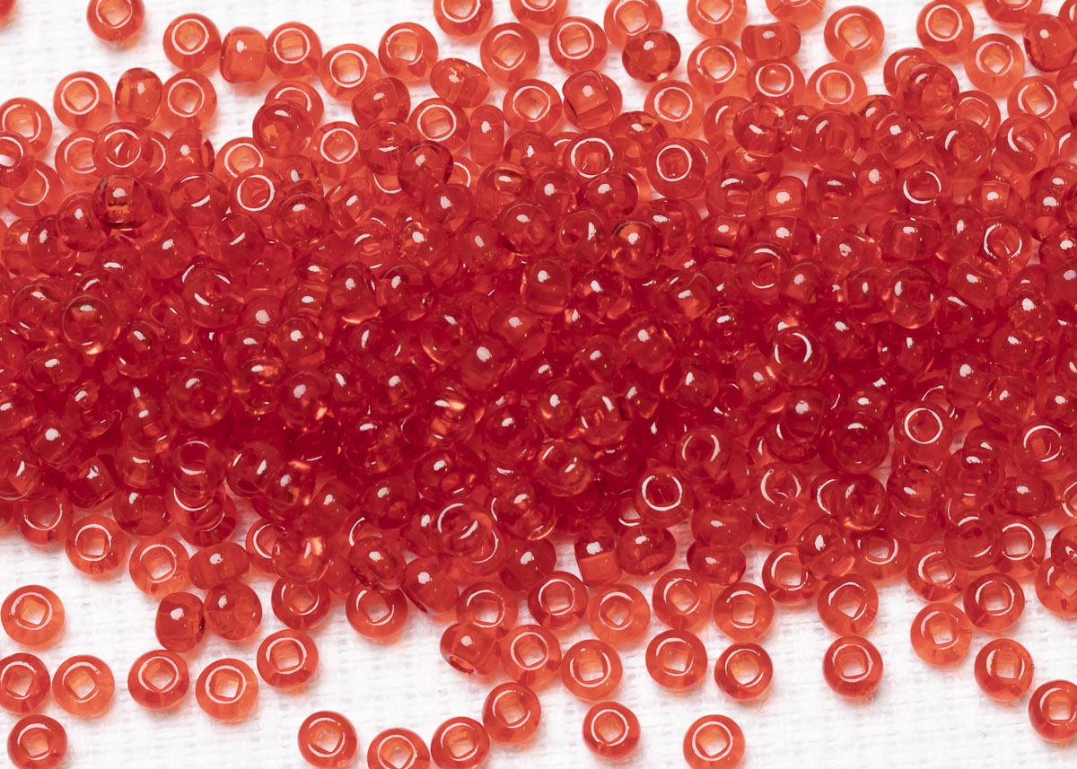 Бисер Чехия круглый 08/0 50 г 90050h прозрачный алый квадратное отверстие