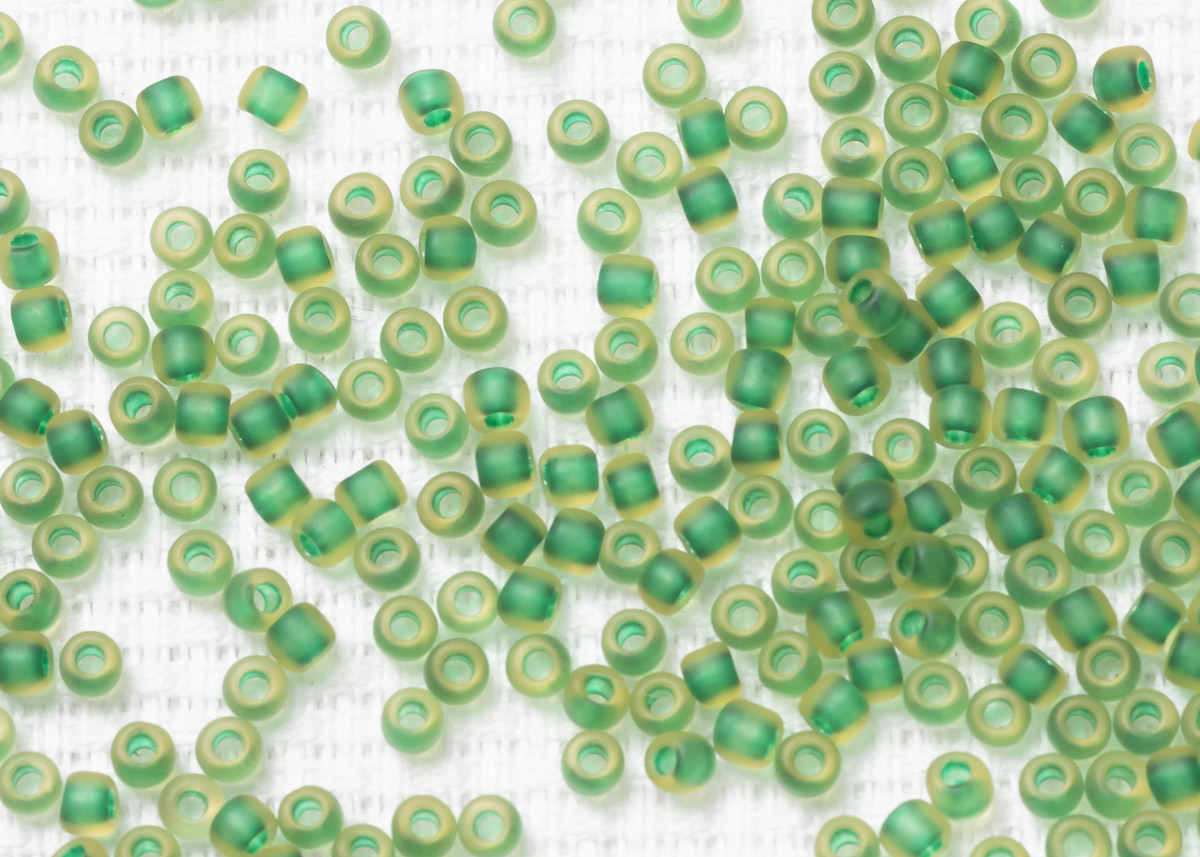 Бисер Япония круглый 11/0 10г 0242FM нарцисс/изумруд матовый, окрашенный изнутри