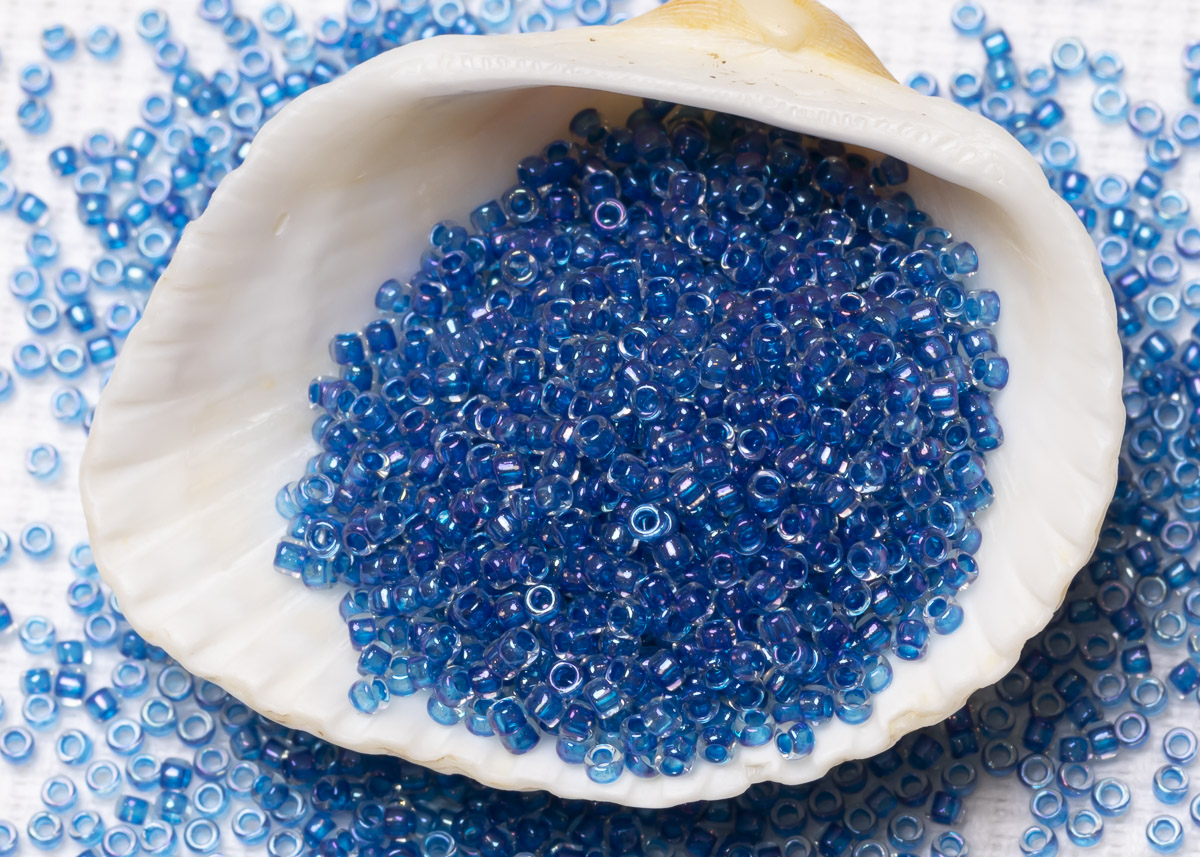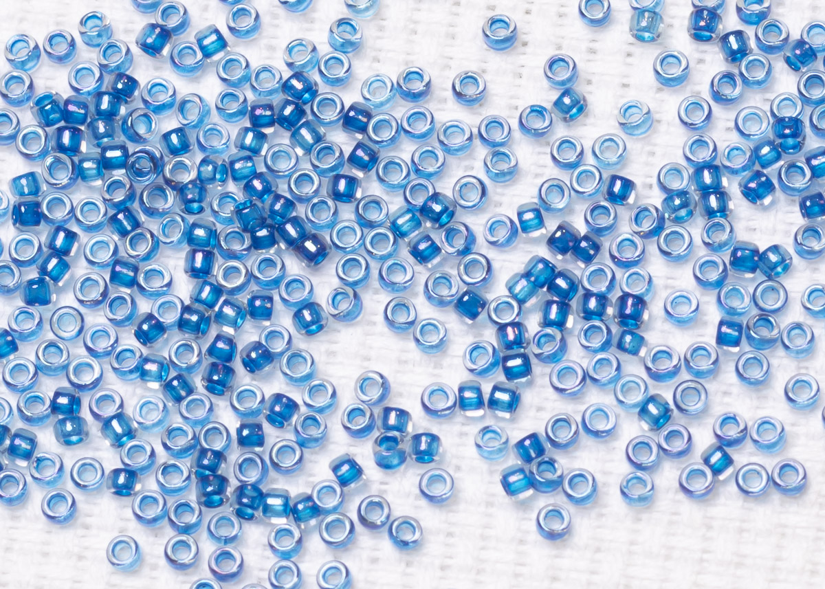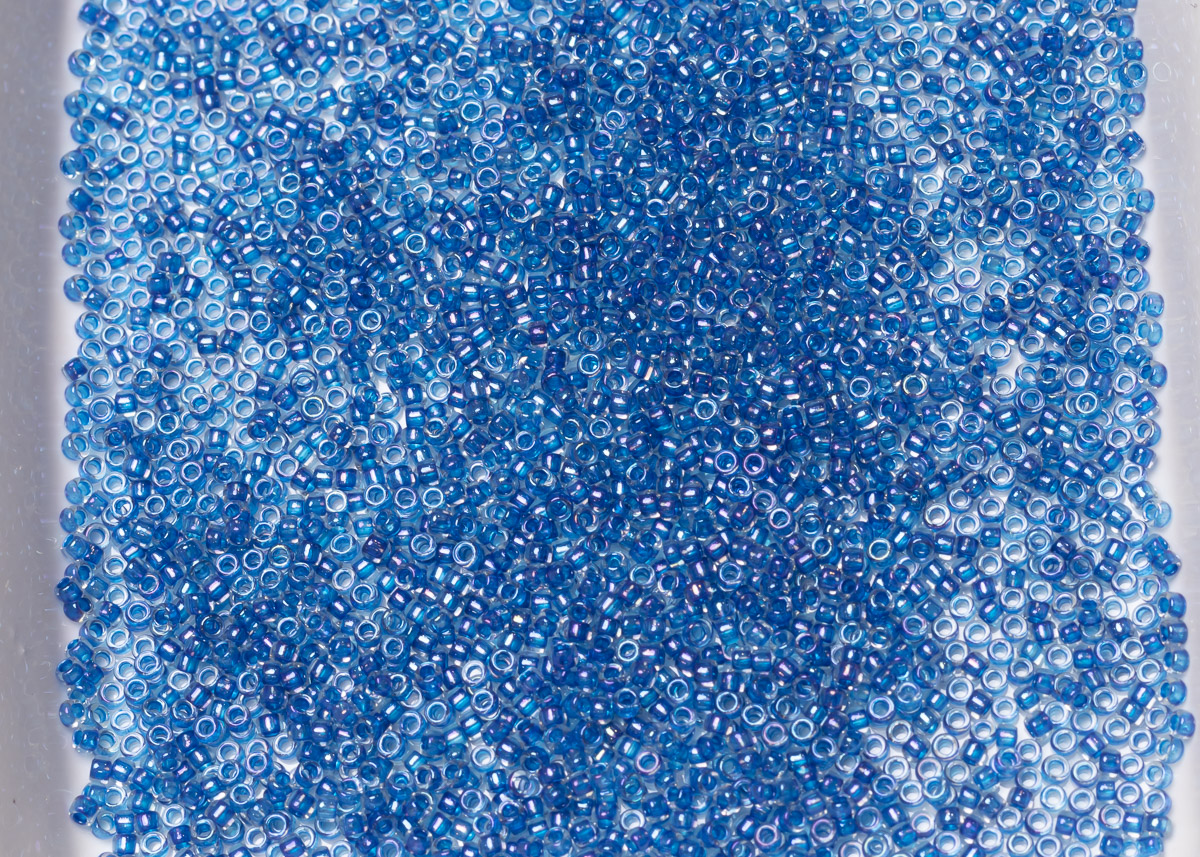 Бисер Япония круглый 15/0 10г 0189 хрусталь/Карибское море глянцевый, окрашенный изнутри