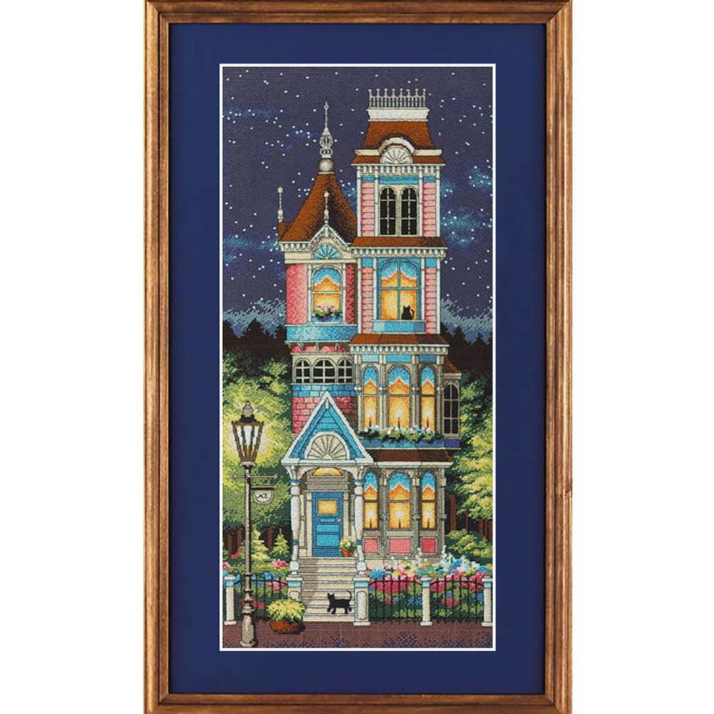 В набор входит: хлопковое мулине Dimensions, аида 14 пластиковая, игла, схема, общая инструкция.