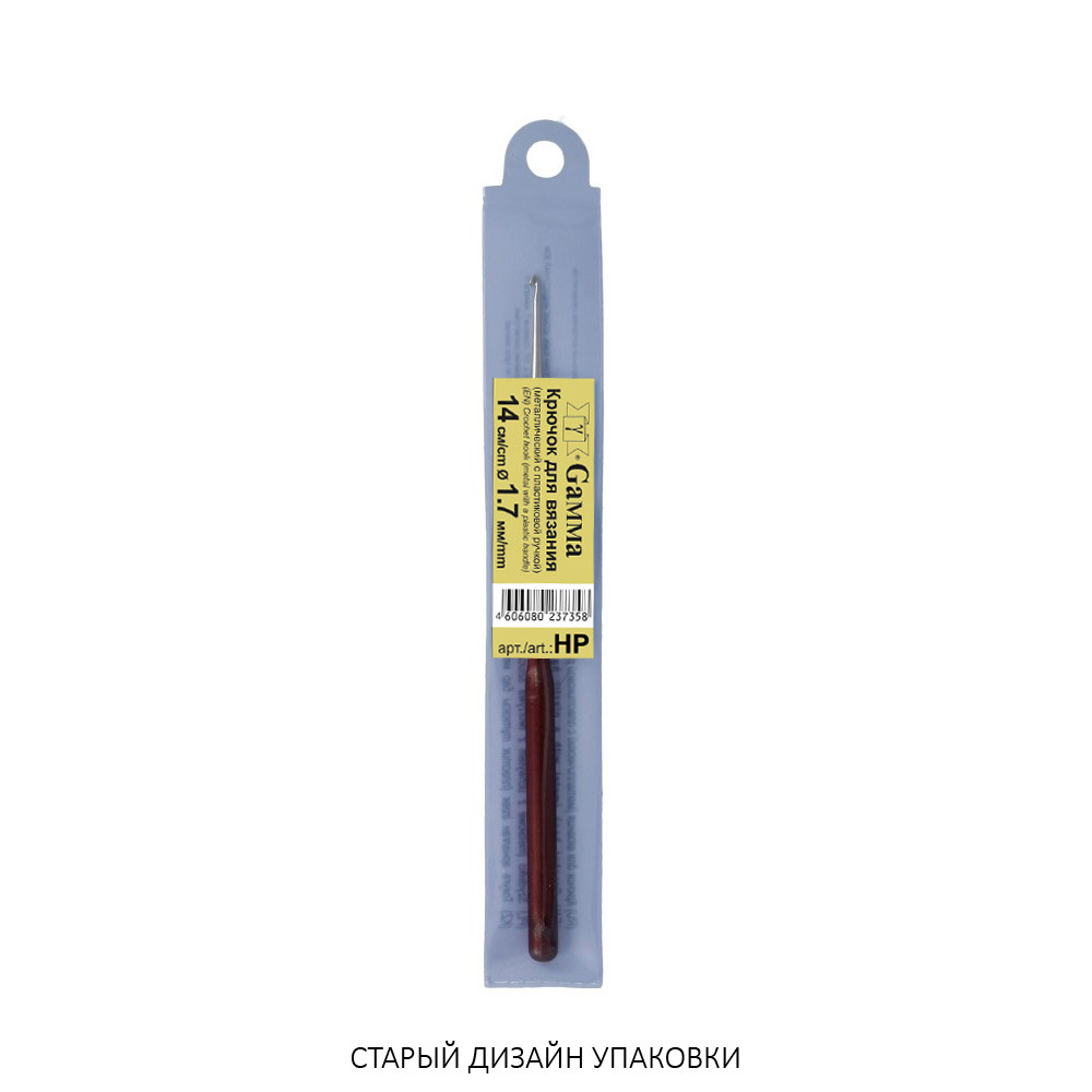 Для вязания " Gamma" HP крючок с пласт. ручкой сталь d 1. 7 мм 14 см в чехле .