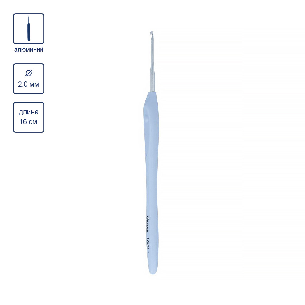 Для вязания " Gamma" RHP крючок с прорезин. ручкой алюминий d 2. 0 мм 16 см в блистере .