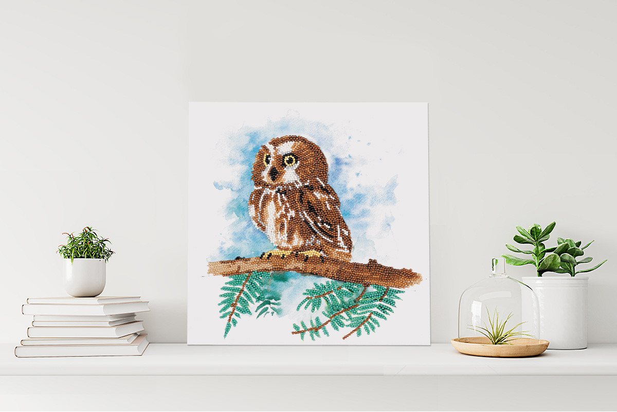 Кристальная ( алмазная) мозаика " ФРЕЯ" ALBP- 290 постер " Совенок на ветке" 30 х 30 см
