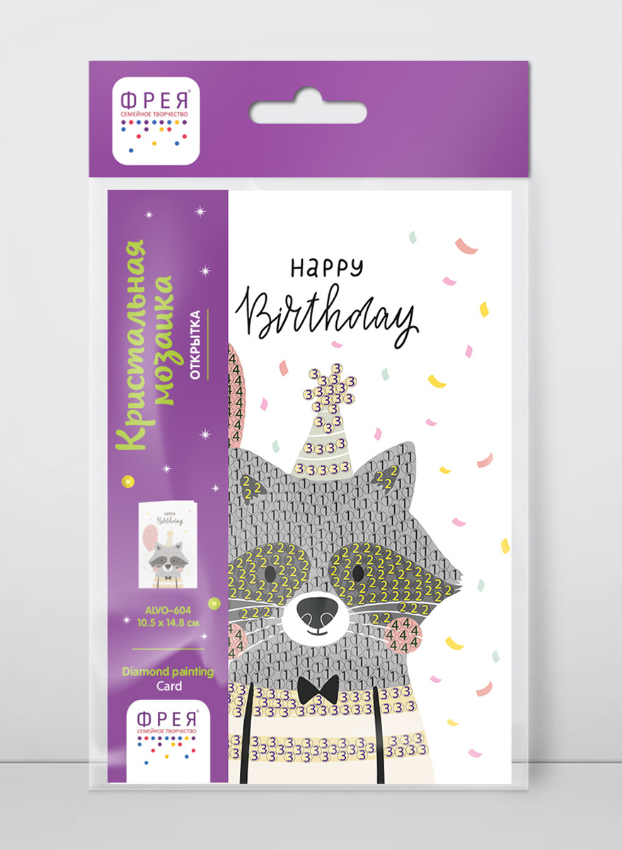 Кристальная ( алмазная) мозаика " ФРЕЯ" ALVO- 604 открытка " Счастливый енот" 10. 5 х 14. 8 см