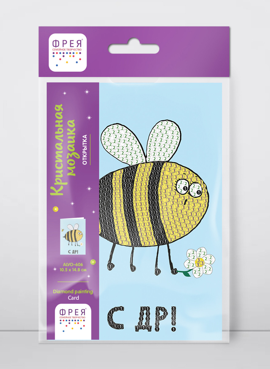 Набор для изготовления открытки в технике " Кристальная/ алмазная мозаика". Выполнение работы не требует специальных навыков, выкладывать картинку очень легко и быстро. Стразы наклеиваются поверх изображения со схемой на уже нанесенный клеевой слой. Увлекательный процесс создания открытки поможет развить мелкую моторику и повысить концентрацию внимания. Готовая работа станет замечательным подарком близкому человеку! В набор ТМ ФРЕЯ " Кристальная мозаика" входит:- основа открытки с клеевым слоем и защитной плёнкой,- стилус с восковой подушечкой,- круглые стразы с запасом более 30%,- картонный лоток,- инструкция. Количество цветов: 3Тип выкладки: частичнаяУровень сложности: 1 из 3Размер готового изделия: 14. 8 х 10. 5 смРазмер упаковки: 11. 3 х 20 смНабор сертифицирован для детского творчества. Сообщить о неточности в описании
