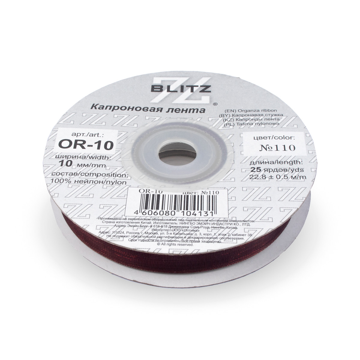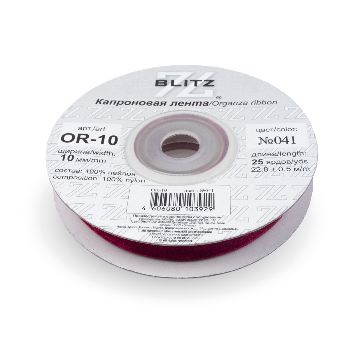 Лента капроновая OR-10 №041 т.бордовый