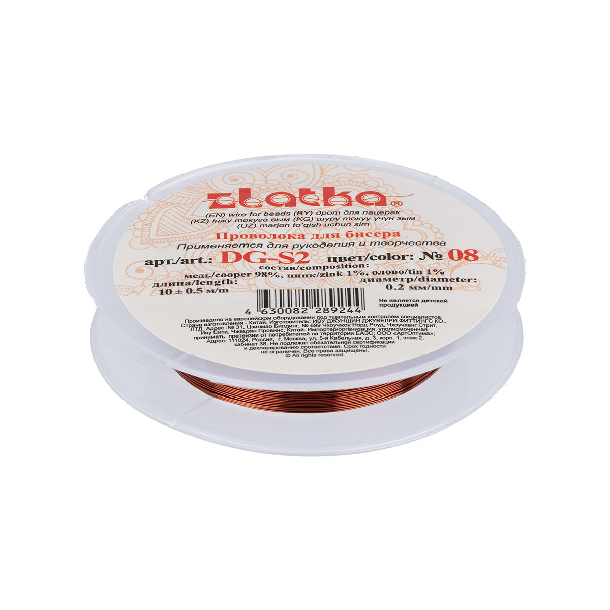 " Zlatka" / " Gamma" Проволока для бисера DG- S2 d 0. 2 мм 10 м №08 под темную медь