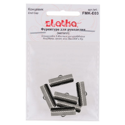 Концевик " Zlatka" FMK- E03 используются для профессионального аккуратного завершения бус, колье или браслетов. Они позволяют подготовить концы украшения к присоединению застежки. Обжимные концевики универсальны и удобны в использовании. Они зажимаются с помощью инструментов, а к петельке концевика присоединяется застежка напрямую или при помощи соединительного колечка. Тщательно зажимайте концевик, чтобы крепление получилось надежным. Длина: 20 мм, Ширина: 7 мм, Толщина: 2 мм, Отверстие 2 мм. Состав: 100% железо. Использование качественной фурнитуры играет очень важную рольпри изготовлении бижутерии. От правильного выбора подвески, коннектора, замка или любой другой связующей части зависит целостность готового изделия. Сообщить о неточности в описании
