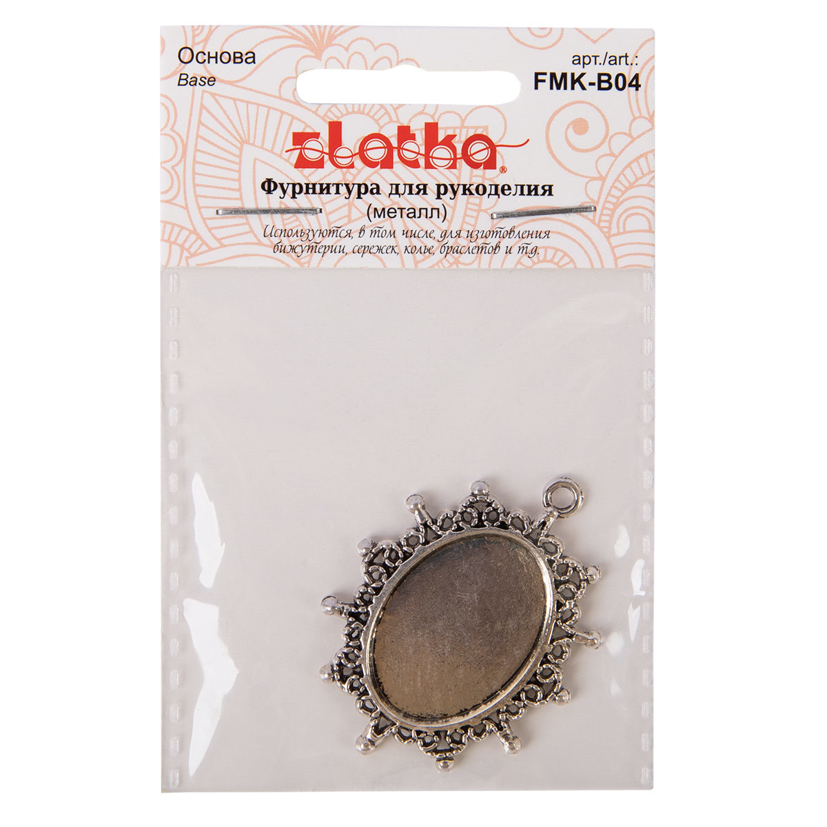 Основа " Zlatka" FMK- B04 декоративная, металлическая применяется для обрамления кабошонов или камей. Используя её можно изготовить подвески, серьги, колье и многое другое. Овальной формы. Размер: 31х41 ммВнутр. размер: 18х25 ммСостав: цинковый сплавСообщить о неточности в описании